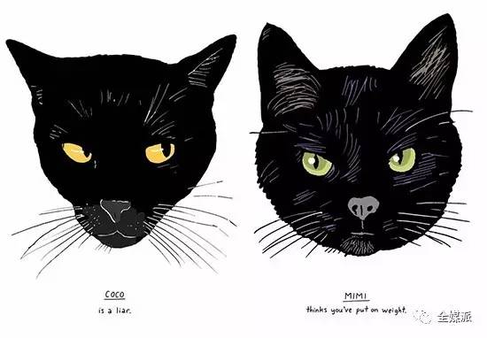 还有插画家们也是一个个铲屎官。Peter Arkle和Amy Goldwasser这对夫妻患上了“黑猫上瘾症”,他们制作了一本方形精装书《All Black Cats Are Not Alike(每一只黑猫都与众不同)》,画了50只表情各异、各有故事的黑猫。