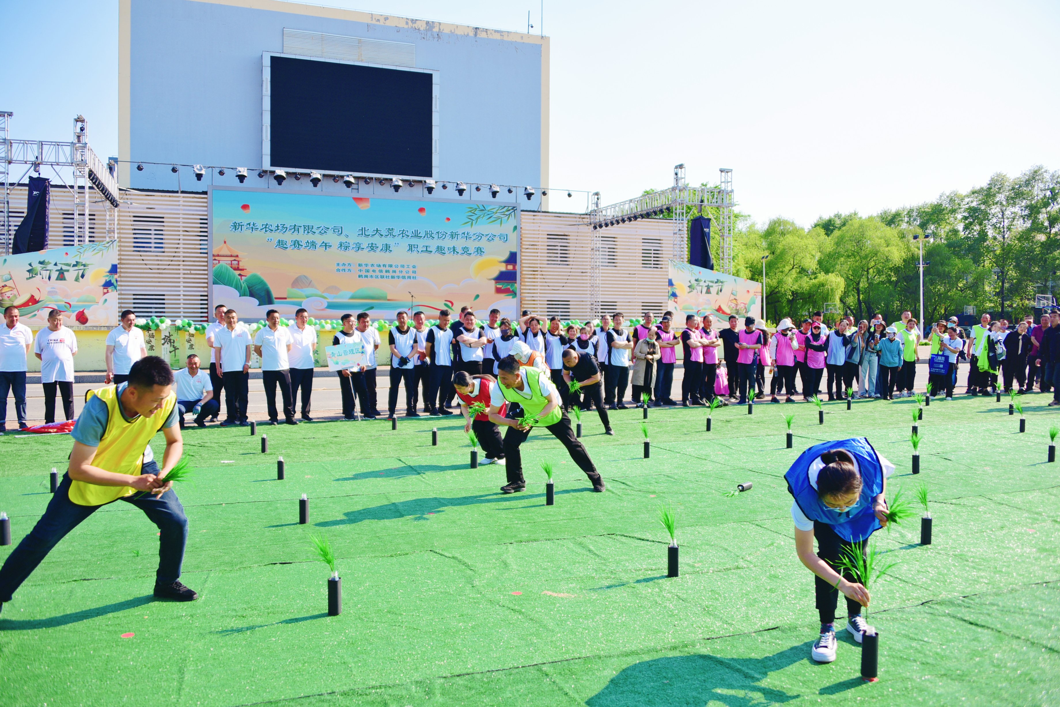 另一边,北大荒集团新华农场工会举办“趣赛端午 粽享安康”职工趣味竞赛活动。来自农场各单位、各部门的170余名职工齐聚一堂,共同体验传统民俗与趣味运动结合带来的欢乐。