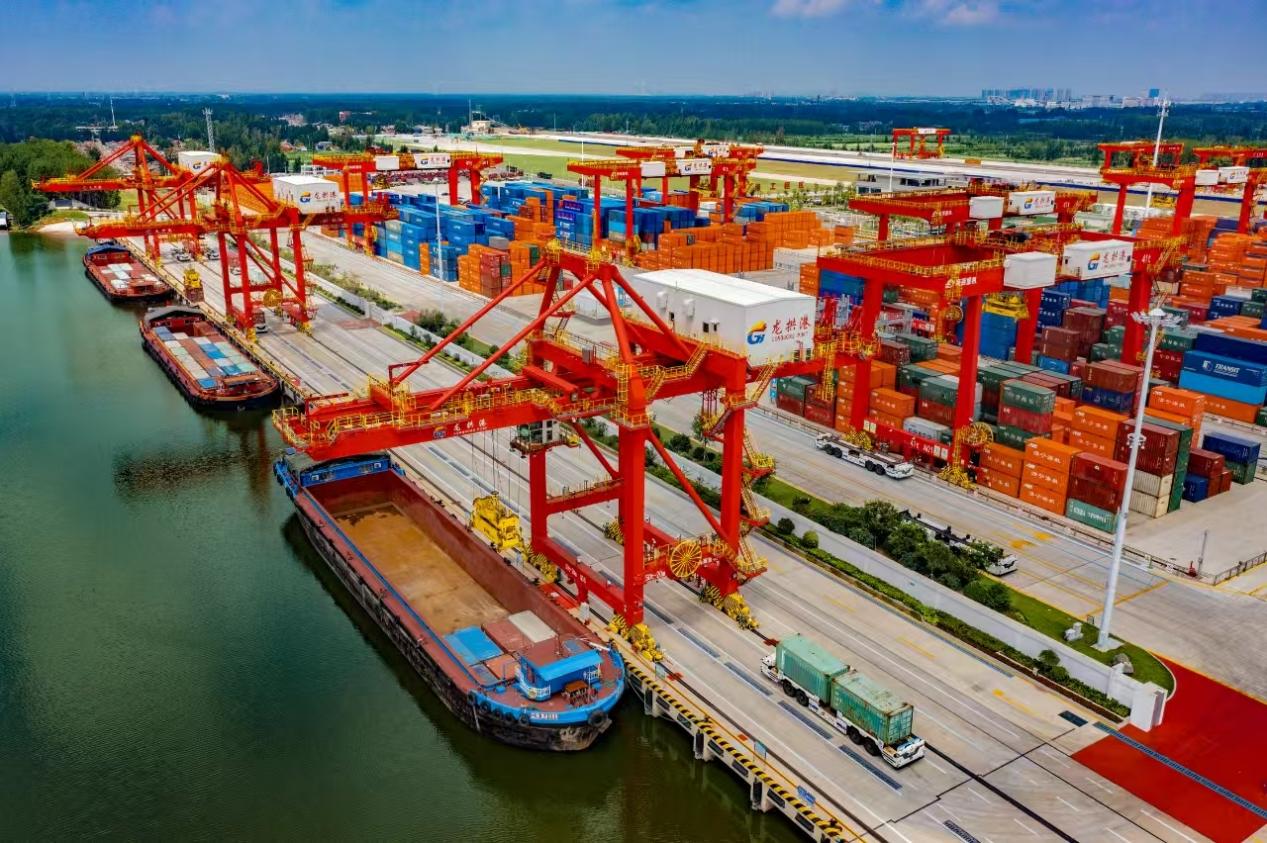 “济苏绿色穿巴”成功首航,构建起鲁苏协同发展的水运物流体系,畅通了济宁—苏州物流大通道:中欧班列开进龙拱港,铁路货物可直接从龙拱港“下水”,沿运河到达长三角及长江一带,水路货物也可沿新兖铁路“翻山越岭”。