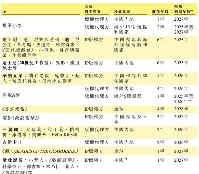 虽然公司手握迪士尼、哆啦A梦、三丽鸥等顶级IP授权,但这些"金字招牌"却暗藏隐忧——多家IP协议将在未来两年内到期。在潮玩行业竞争日趋白热化的当下,乐自天成能否凭借IPO化解IP续约危机?