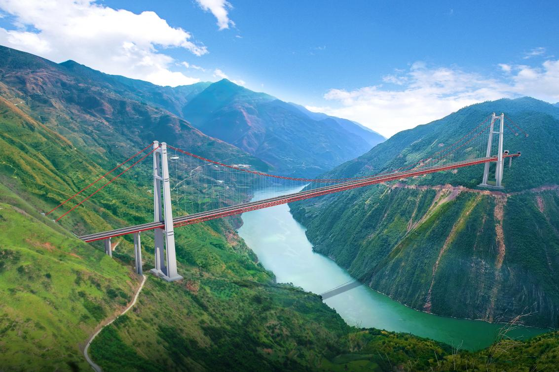 雅砻江特大桥是西香高速“九大超级工程”之一,位于四川省凉山彝族自治州盐源县金河镇,横跨长江一级支流雅砻江,连接盐源和西昌两地,为全长1482.5米、主跨1200米的双塔单跨钢桁梁悬索桥。值得一提的是,雅砻江特大桥在设计中采用高韧性混凝土组合桥面板与钢桁梁组成板桁结合结构,这种设计在跨度超过一千米的悬索桥里,属世界首创,它最大的好处是简化钢结构构造,能降低桥面板厚度,改善桥面铺装的耐久性,提高使用寿命。
