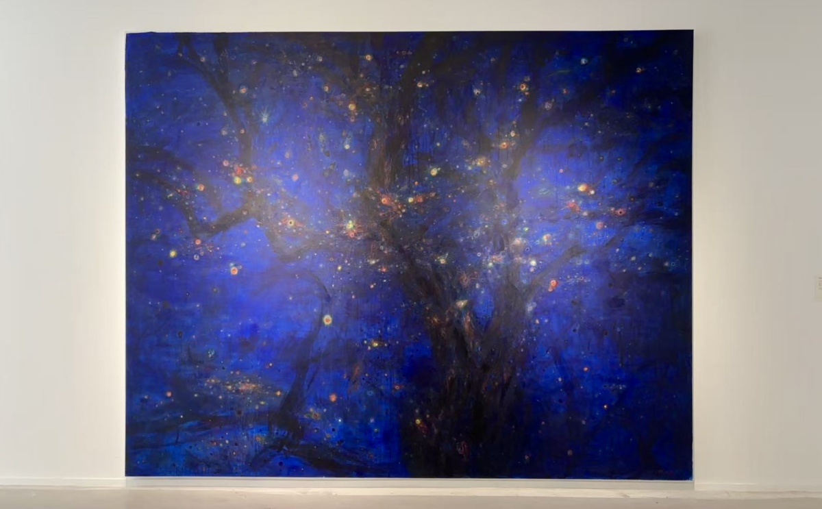 《涌现》是他一直在创作的题材,宏观的天宇与一个个微小的人像同构一个不断“生成”中的画面,故意的模糊处理暗示了一个更为复杂的未来图景。