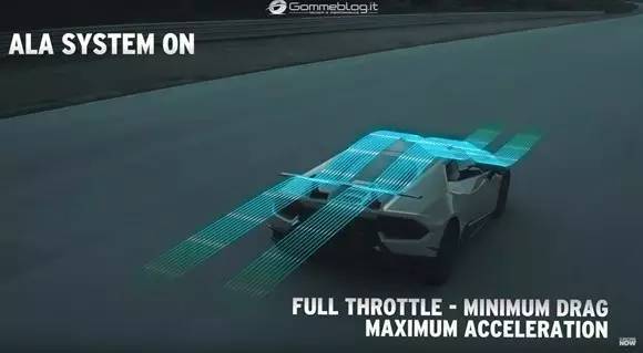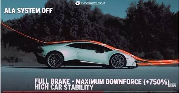在直线行驶时,兰博基尼的ALA系统调节空气动力学部件为小牛获得更低的风阻,在过弯时,又会切换模式,为小牛创造更高的下压力,让车辆和轮胎可以被牢牢地压在路面上。