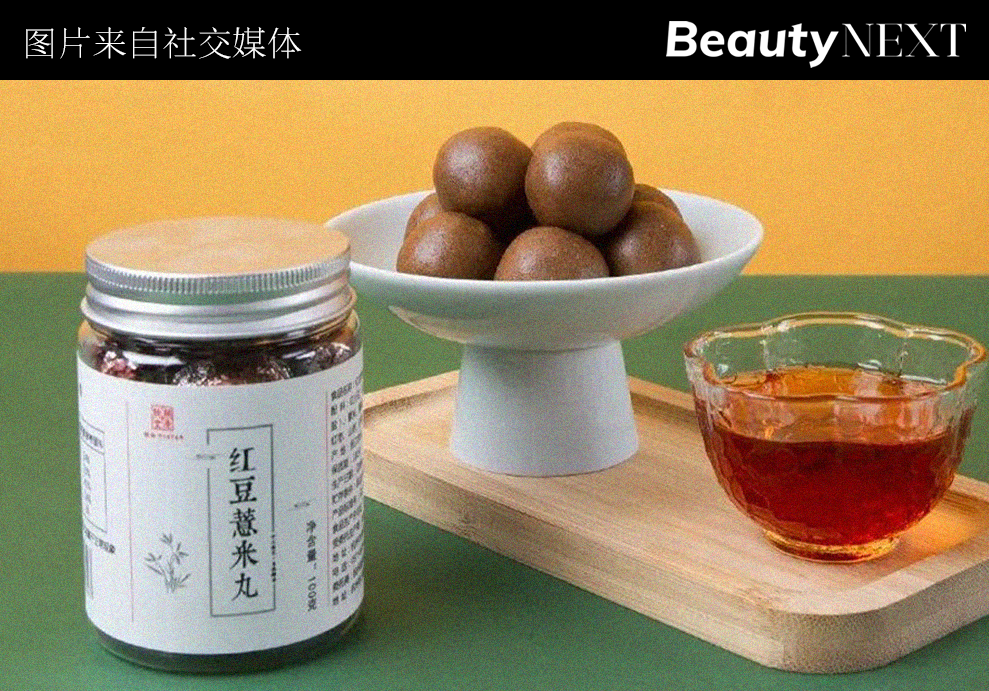 典型如薏仁水兼具祛湿健脾和美白养颜双重功效;玫瑰、花胶等传统滋补品也被赋予美容养颜的新内涵。同时在社交平台上,也有许多网友尝试自制“美白方子”。此外,诸如“人生丹凤玫瑰茶”、“人参元气膏”和“竹蔗茅根雪梨茶”等,也是美容养身的人气产品。