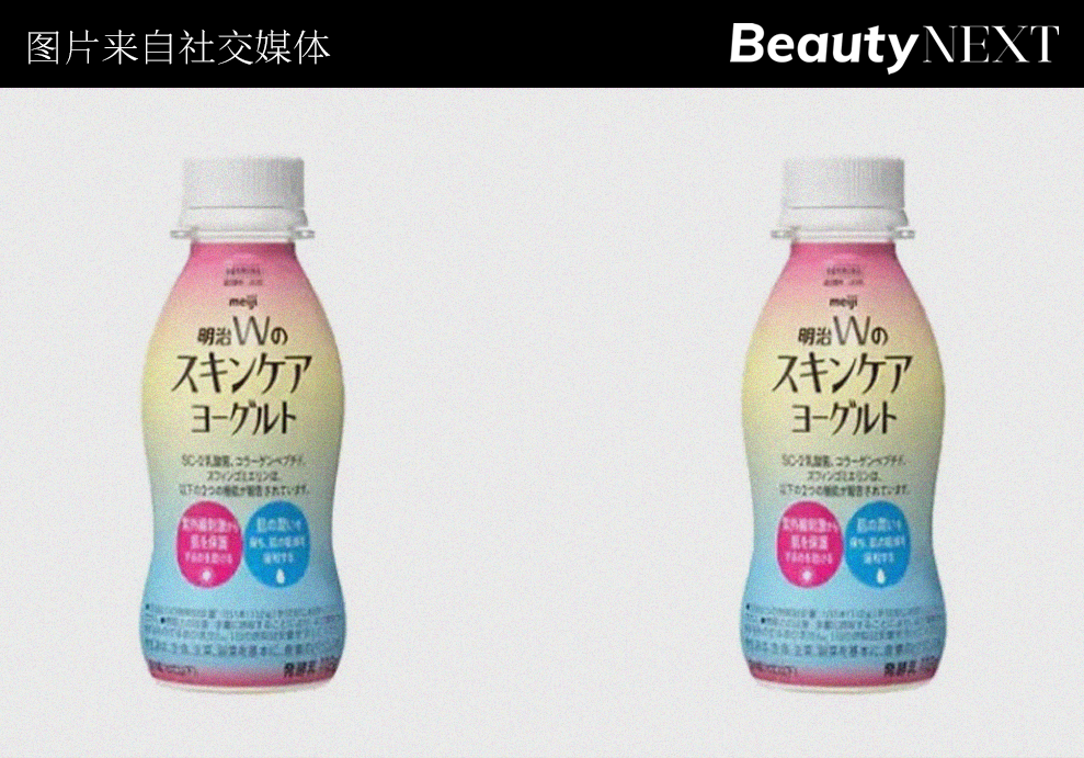 今年3月,两家全球食品集团相继跨界美容健康领域。全球知名乳品品牌明治在日本市场推出“明治W肌肤护理酸奶”(含税156日元),主打紫外线防护和皮肤保水功能。
