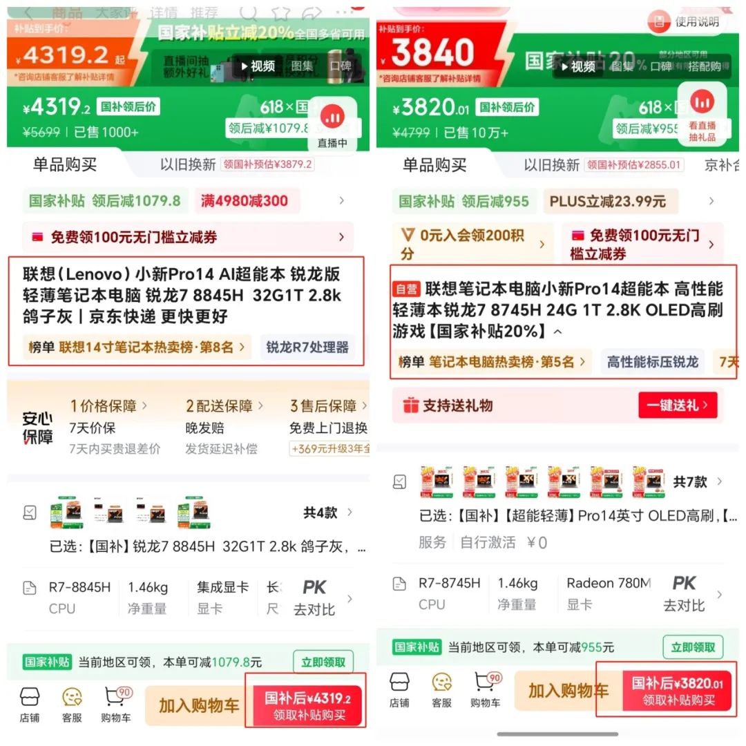 对这类用户来说,联想PC的真实吸引力是性价比:二者差价本就不大,通常在百元至千元不等——2024年发售的拯救者Y9000P,在硬件配置相同的情况下,AI元启版的价格仅比普通版高200元,如经教育特惠与济南、西安等地区以旧换新政策的阶梯式补贴,二者差价将会更小。