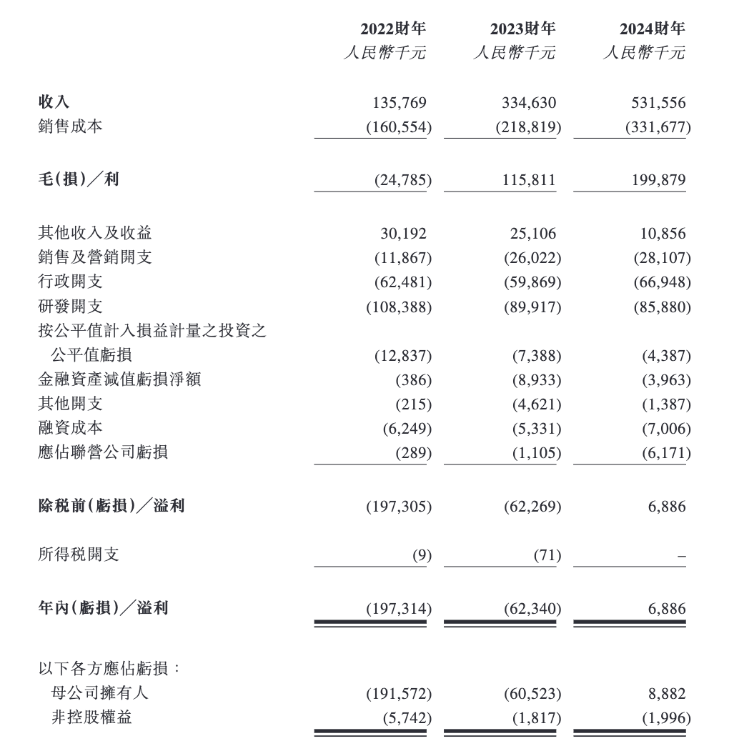 同期,年内溢利分别为-1.97亿元、-6234万元和688.6万元;经调整溢利净额分别约为-1.98亿元、-6104.9万元和1337.5万元。
