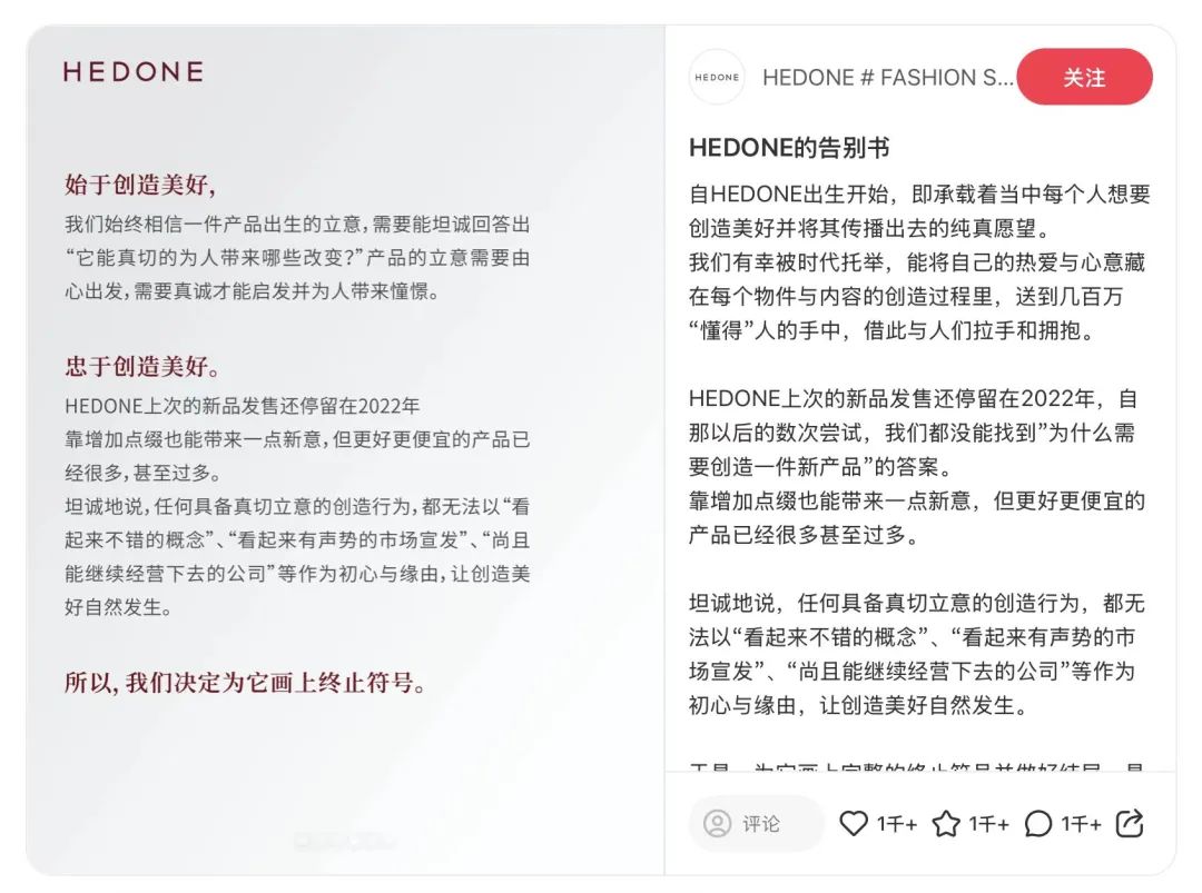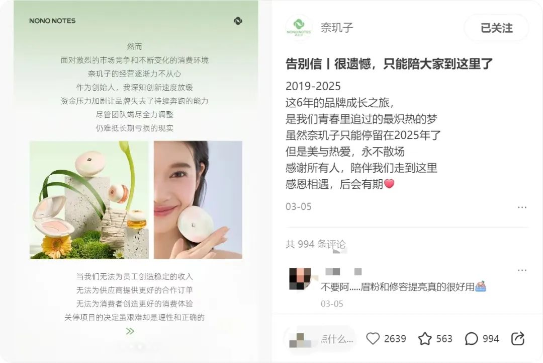 奈玑子创始人陈诗夷在小红书闭店公告中也表示,不做奈玑子,主要原因是创新速度放缓、资金压力加剧让品牌失去了持续奔跑的能力,关停项目才是一个正确的决定。