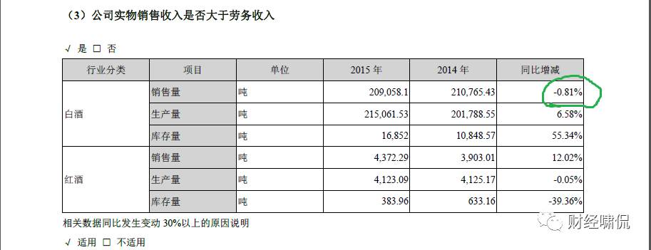 但《财经啸侃》特约、独家撰稿人五谷君还注意到,2016年,洋河股份的白酒销售量和生产量各为19.82万和20.45万吨,分别同比下滑5.2%和4.93%左右。