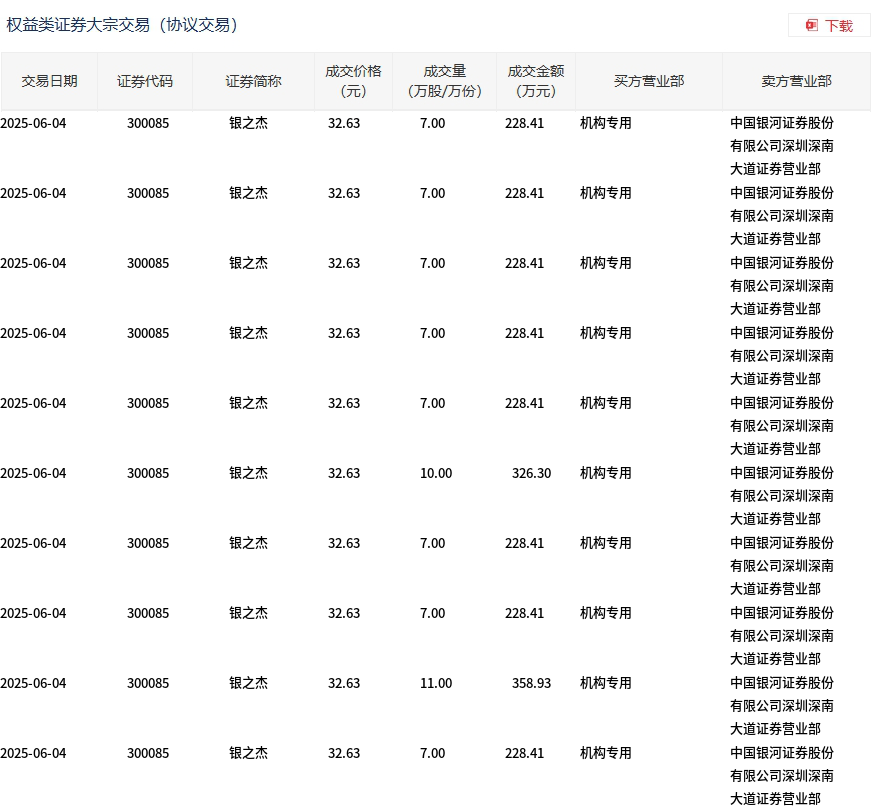 银之杰今日大宗交易折价成交77万股,成交额2512.51万元
