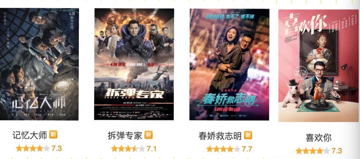 今年的五一档是绝无仅有的,四部新片各具特点,均拥有上乘的质量。四部影片的豆瓣打分均超过7分,这是不可思议的。