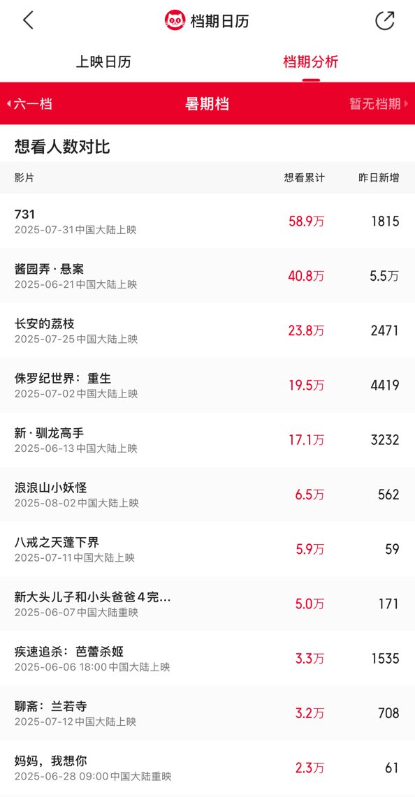 《酱园弄·悬案》的前路,仍是一场充满变数的“押注”。而对于国产电影而言,若想在今年暑期档重新夺回市场主动权,也绝不能将全部希望寄托于某一部影片之上,早早锁定7、8月的《731》《长安的荔枝》《恶意》《浪浪山小妖怪》《聊斋:兰若寺》等,同样至关重要。