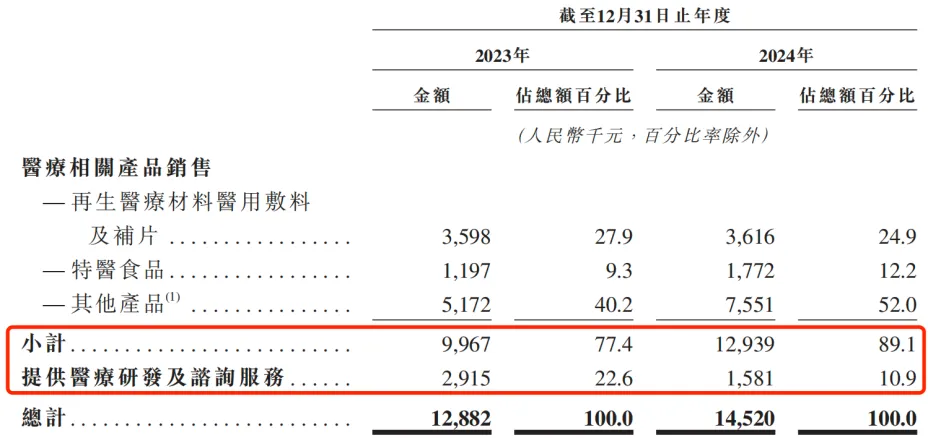 其中,再生医疗材料医用敷料及补片每年的收入在300万元左右,产品包括重组胶原蛋白冻干敷料和液体敷料等。