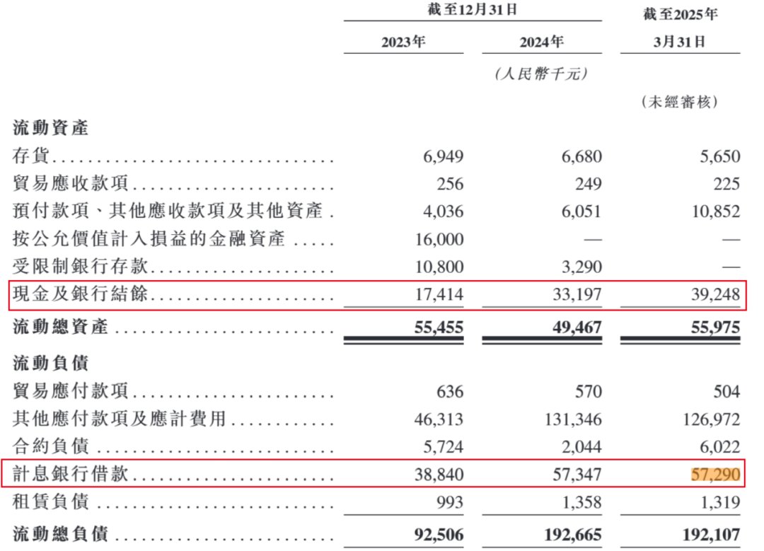 招股书显示,截至2025年3月31日,公司的现金及现金等价物为3924.8万元、短期银行借款5729万元,现金及现金等价物无法覆盖银行借款。