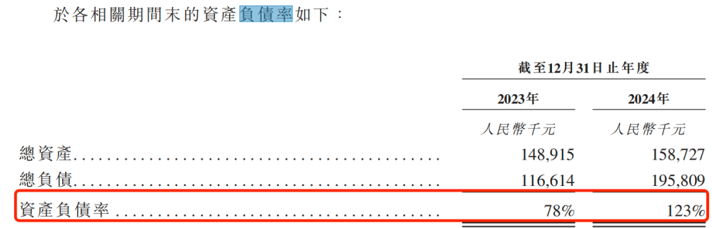 值得注意的是,2023年和2024年,公司的资产负债率分别是78%和123%,公司在2024年已经出现“资不抵债”的状况。
