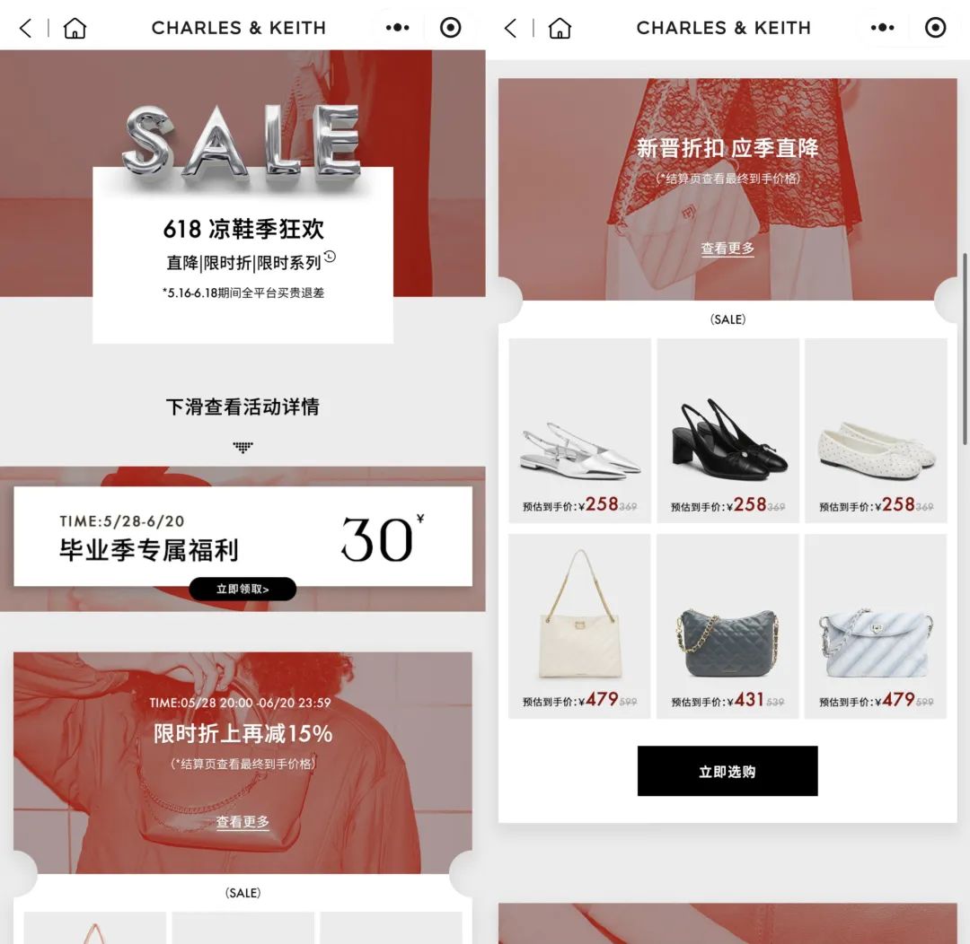 Charles &Keith 于 2010 年在上海来福士广场开设中国首店时,定位还是来自新加坡的小众轻奢品牌,一度被消费者赋予 “小 CK” 的标签,其包袋、鞋履等产品的折扣款仅在奥特莱斯渠道可见,维持相对矜持的价格体系与轻奢定位。时移世易,如今 Charles &Keith 已被普遍视为 “快时尚” 品牌 ,折扣价格低至500元以下,成为了大牌“平替”。