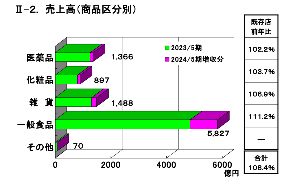 在Drugstore Cosmos总营收中一般食品占据了近六成,并主要靠售卖低价的冷冻食品来拉动,预计到2025年5月其总营收将突破万亿日元。