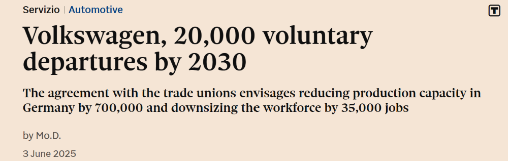 ▲外媒报道大众汽车集团约2万名员工将在2030年前自愿离职