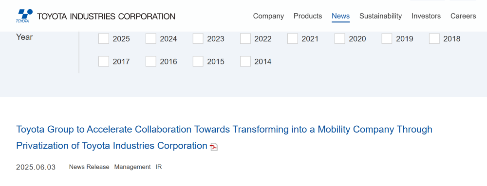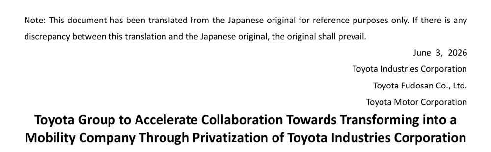 丰田自动织机(Toyota Industries Corporation)宣布,董事会已决定接受以丰田汽车为中心的阵营提出的收购提案。