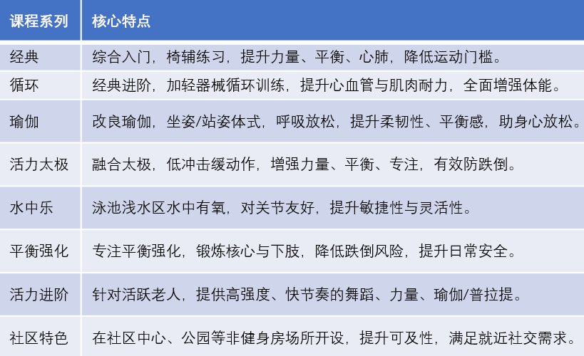 提供一系列高度定制化、适合不同健康水平老年群体的健身课程。