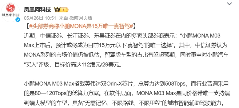 除此之外,二季度末还有Mona M03智驾版本及中型SUV上市,预计开始放量都要集中在三季度,同时三季度及之后还有三款增程和大改的P7,可以说产品周期还是很强的。