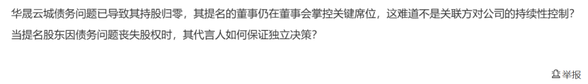 有投资者认为:“提名股东因债务问题丧失股权时,其代言人如何保证独立决策?”
