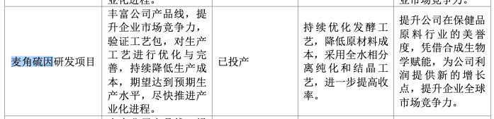 麦角硫因项目也已经在2024年成功投产,预计为公司利润提供新的增长点,提升企业全球市场竞争力。