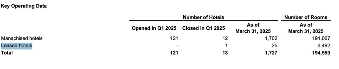 规模增长,随之而来的是收入增长。2025年一季度,加盟管理酒店的收入同比增长23.5%至10.32亿元,给集团贡献超一半收入。相比之下,亚朵自营租赁酒店数量同比减少19.4%,从31家降至25家,收入也从1.68亿元同比下降23.5%至1.29亿元。