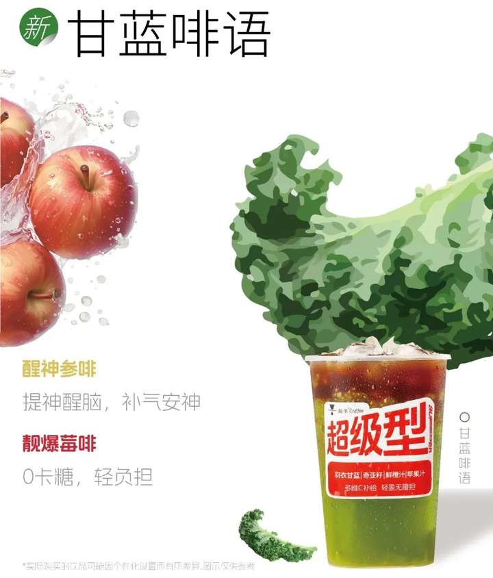 继缇里推出超级美式咖啡后,国内大大小小的咖啡品牌陆续跟进,推出了基于羽衣甘蓝等超级食物的果蔬咖啡饮品。