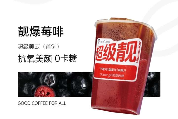 超级靓靓爆莓啡,精选超级食物巴西不老莓,融合“西方灵芝”红菜头和苹果汁,是“优秀的抗氧卫士”,0卡糖调味、“轻负担”,抗氧美颜,是Super girl的首选。