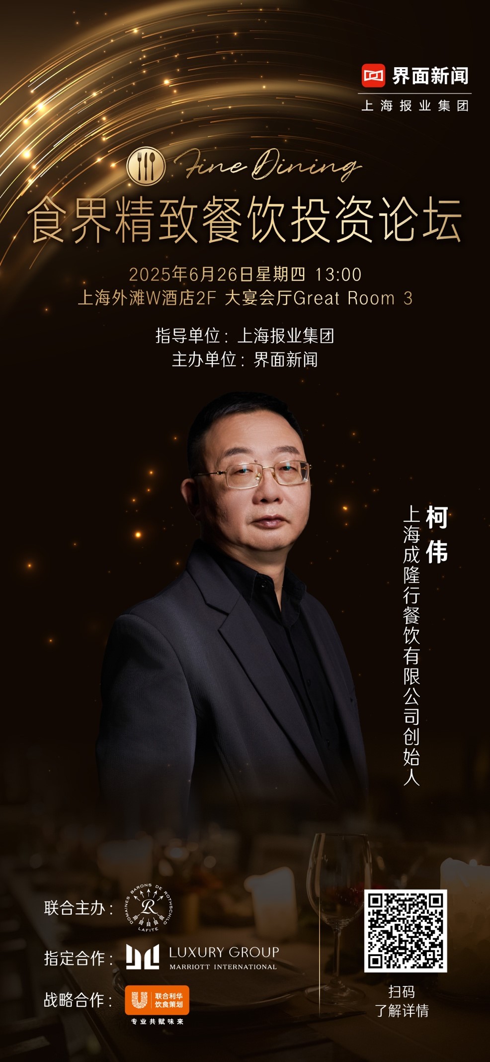 由上海报业集团l界面新闻主办的【2025食界精致餐饮论坛】确认将于2025年6月26日星期四在上海外滩w酒店举行。活动将持续聚焦中国精致餐饮市场,探讨行业发展现状与未来,为中国精致餐饮探寻投资新蓝海,助⼒中国精致餐饮可持续健康发展。