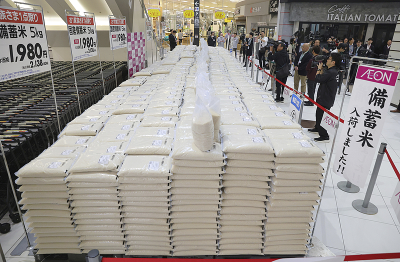 日本政府近期为平抑高涨米价向市场投放多批储备米,剩余库存量大幅减少。新上任的农林水产大臣小泉进次郎在6月6日表示,如果储备米耗尽仍未有效遏制米价上涨,从国外紧急进口大米“也是选项之一”。