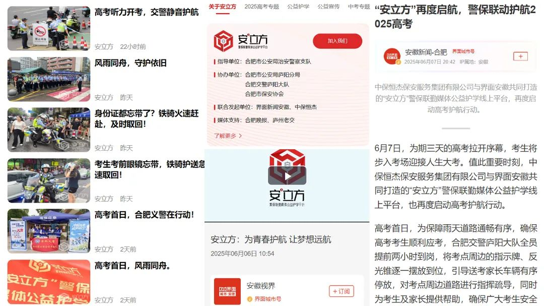 三载春秋更迭,初心始终如一。2025年高考期间,“安立方”警保联勤媒体公益护学平台再次以坚实臂膀,圆满完成了第三年的护考任务。
