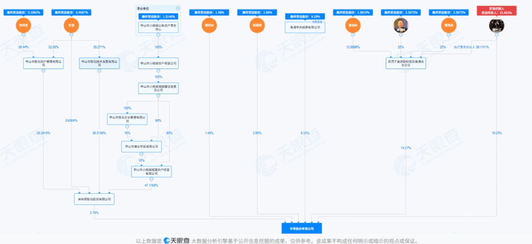 天眼查显示,潘叶江共持有华帝股份15.403%股权,潘权枝、潘垣枝、潘锦枝合计持股比例不到10%,合计不足30%,华帝股份的股权依然分散。