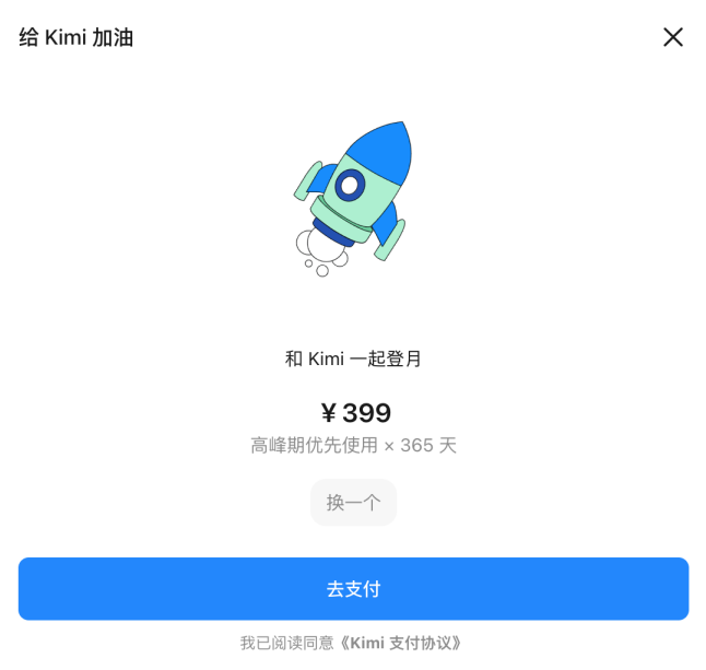 大模型产品的付费模式,无外乎to C的订阅制和to B的API调用、私有化部署等几大类。去年,Kimi选了一条意料之外的盈利模式——打赏,用户可支付5.20元至399元不等的金额购买礼物,获取不同的高峰期优先使用时长。