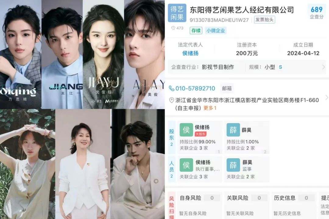 但时移世易,流量时代退了一步的正午,如今却在影视寒冬里悄然抢滩经纪业务。正午近期官宣大戏《谍报上不封顶》《樱桃琥珀》里饰演女二的“00花”沈佳钰,来自一家名叫得艺的经纪公司,而得艺的大股东正是正午董事长侯鸿亮之子侯绪扬。得艺除了广签小花、小生,还签下了像闫妮这样的老戏骨。