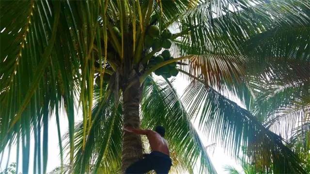 这个活可不是谁都能干的,首先你需要灵活的爬树技巧,其次你要对不同种类的椰子有足够的了解,因为不同种类的椰子成熟的时间都不一样。