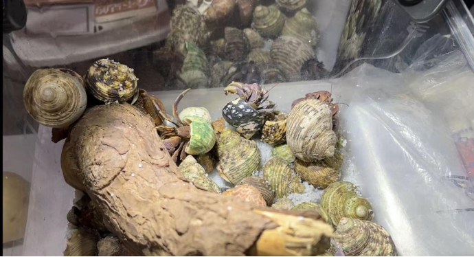 玻璃钢旁边还摆放着各式螺壳,“养寄居蟹的乐趣就在于给它买不同的‘房子’,它们有自己的审美,会选择自己认为漂亮的‘房子’。”工作人员说,“如果主人准备的螺壳很多,它还可能陷入选择困难症,这种可爱的个性让很多年轻人‘入坑’。”