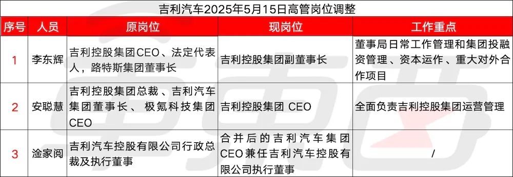 传统民营车企中,比亚迪、吉利也进行了一番人事调整。