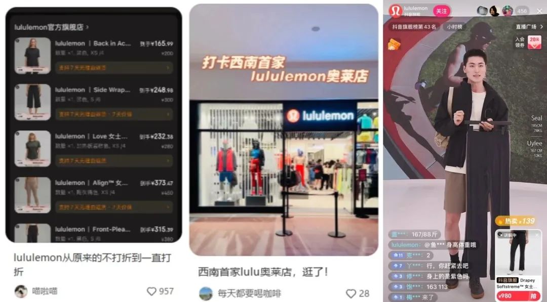就连lululemon也不得不妥协。不仅签约贾玲为中国区品牌大使,品牌门店不断下沉,万年不降价的宣言也在一次次降价促销中被打碎。产品线分散至多元品类,甚至将男性群体逐渐作为核心目标人群。