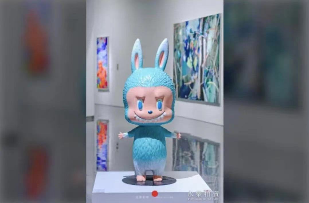 据了解,此次拍卖出现在全球首场初代藏品级LABUBU艺术专场。该款LABUBU尺寸为高131cm,材质为PVC,颜色为薄荷色,在备注栏标注了“全球唯一一只”。除此之外,一款全球限量15版棕色LABUBU以82万元成交。