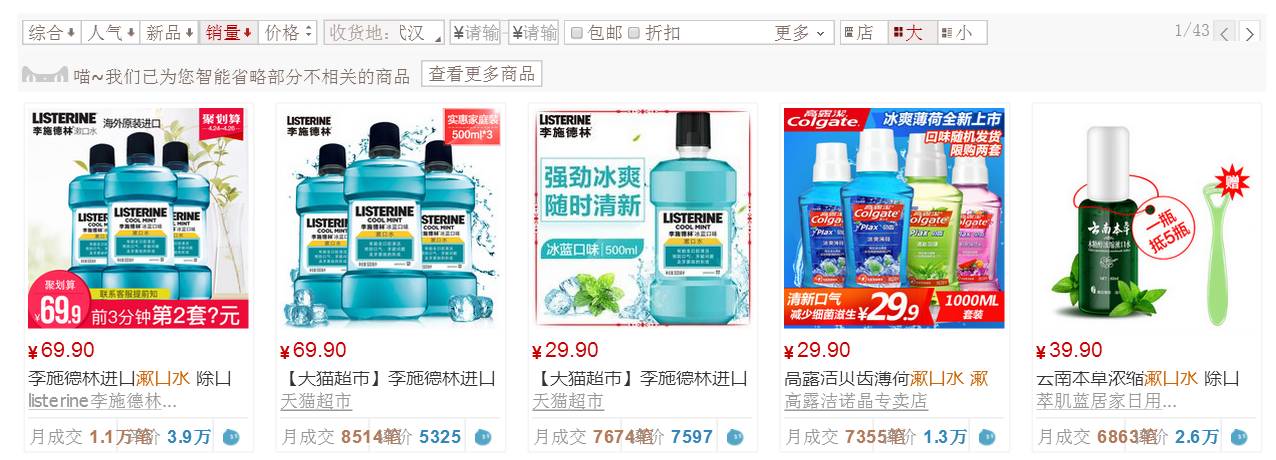 ▍天猫商城漱口水销量前五