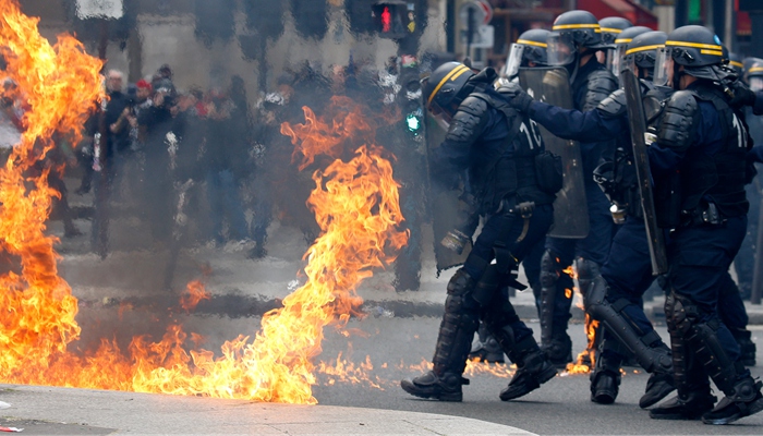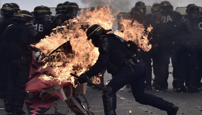 法国每年都会举行五一国际劳动节游行,但由于总统大选,今年的游行成为了竞选和抗议集会。部分抗议者投掷燃烧弹,造成六名警察受伤。