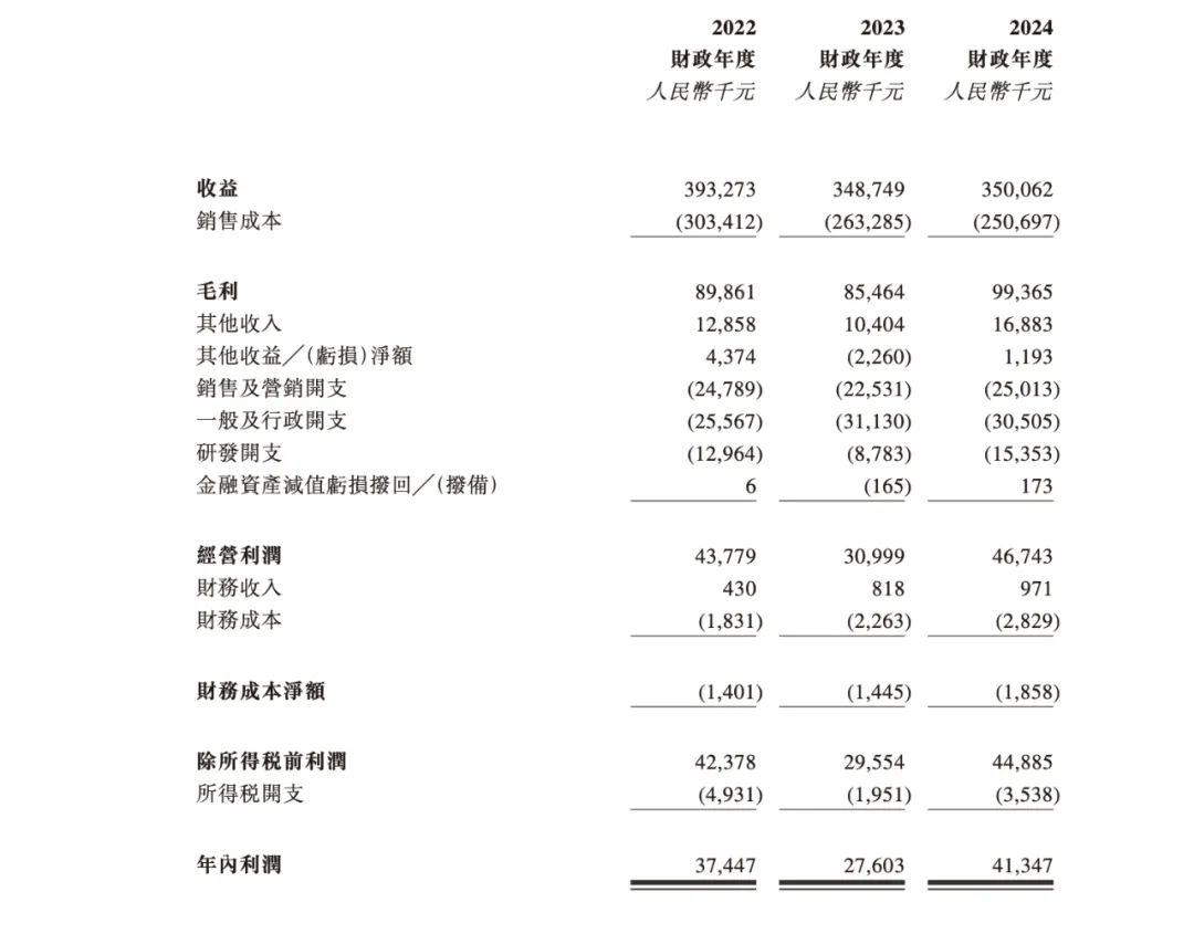 综合多份招股书,2021-2024年(下称:报告期),容大科技的收入分别约3.80亿、3.93亿、3.49亿、3.50亿元;毛利分别为8921.4万、8986.1万、8546.4万、9936.5万元;经调整利润分别为3328.5万、4560.5万、3620.8万、4964.0万元。