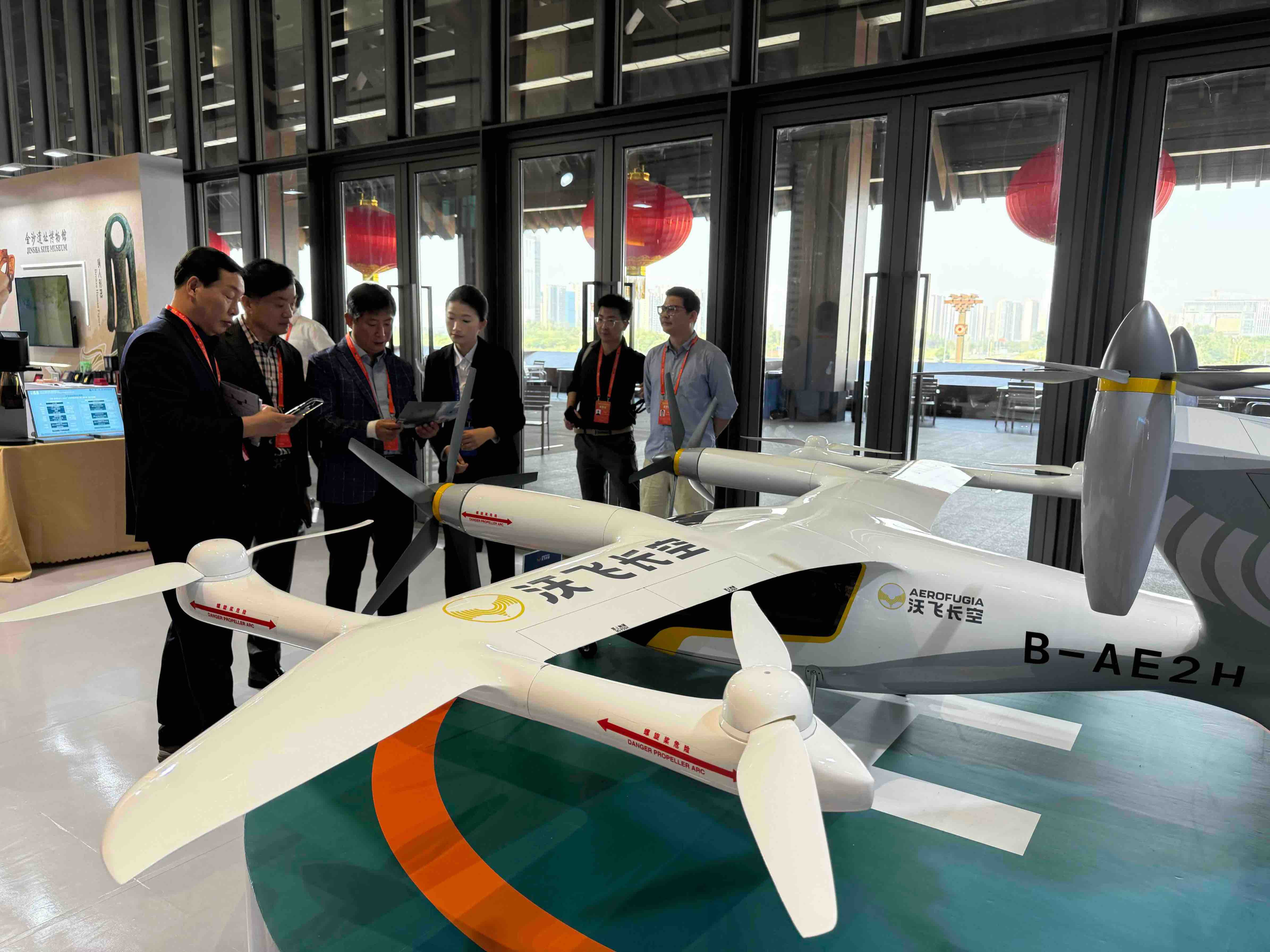 在“低空交通”体验区,四川沃飞长空科技有限公司最新研制的沃飞AE200系列低空飞行器,是国内首家获民航局受理适航审定申请的有人驾驶载人飞行器(eVTOL),吸引众多国内外嘉宾目光,来自香港、澳门等地区的嘉宾对该产品表达了强烈兴趣,与公司负责人深入洽谈。