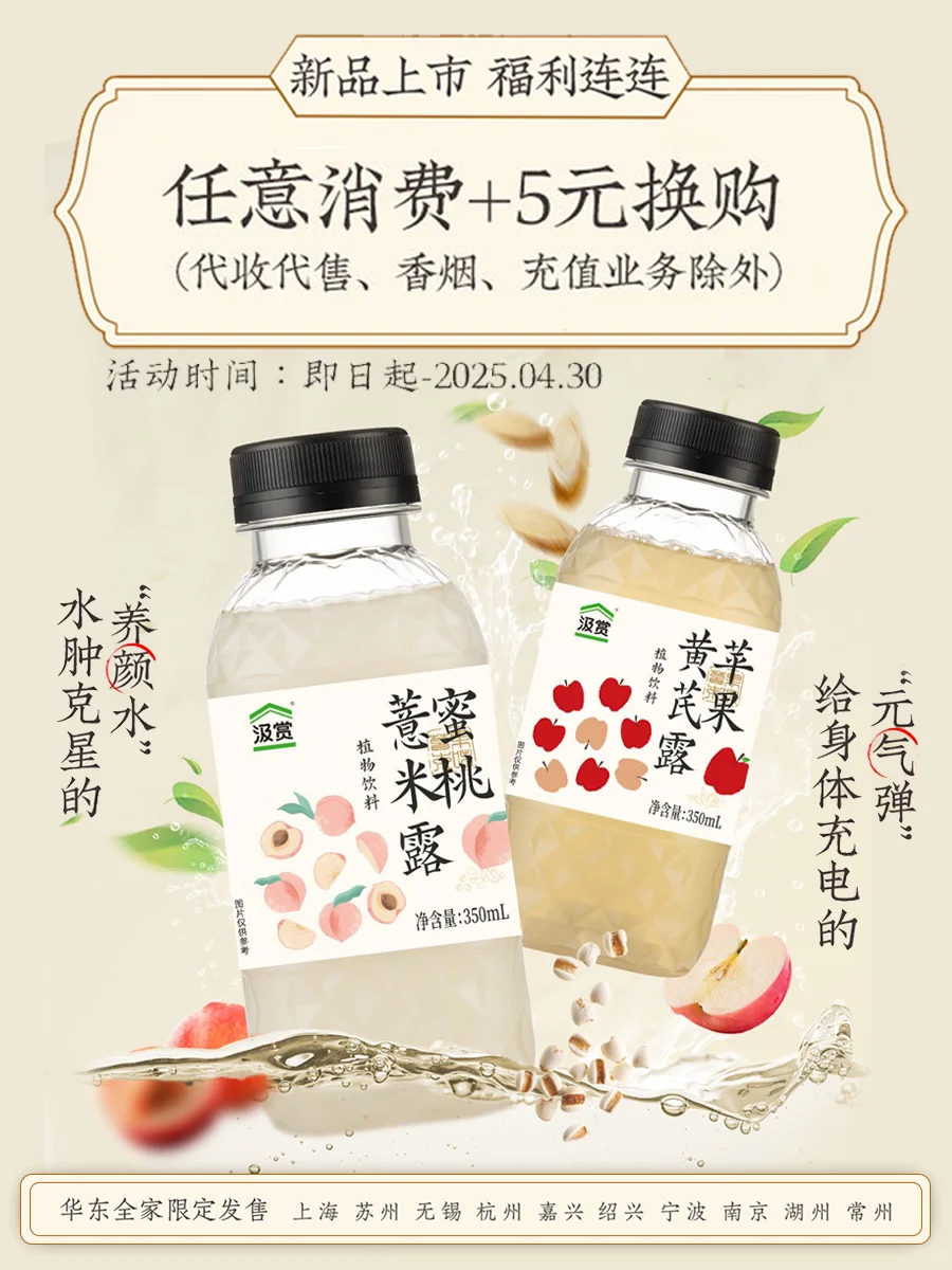 此外,今年以来,711 接连上新的7S饮用天然水、7S小熊咖啡冰杯等7-SELECT自有品牌饮品,广受市场好评;全家旗下汲赏先是上新了两款牛乳茶,后与果子熟了联名限量首发15万瓶明前龙井,48小时内便售罄一空,而后蜜桃薏米露、果味黄芪露等养生水在华东地区限定发售,精准布局养生水市场;中百罗森同样推出橘汁沃柑汁HPP复合果汁、羽衣甘蓝HPP复合果蔬汁等新品饮料,在社交媒体平台引发热议。