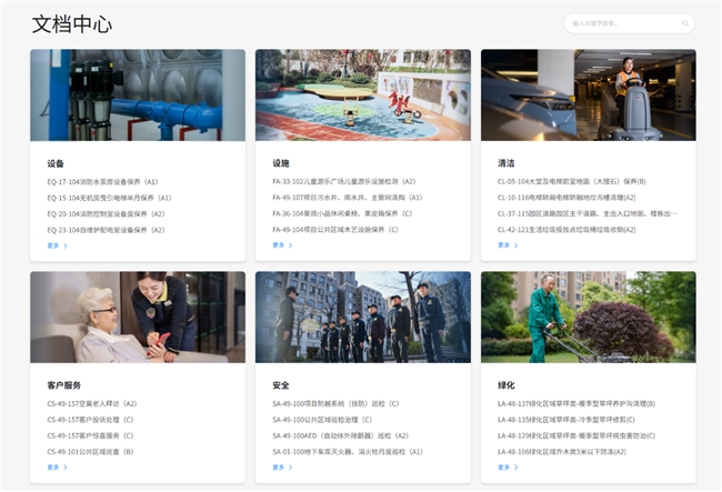 另一版块就是详实的508项服务清单,分门别类归属到设备(EQ)、设施(FA)、清洁(CL)、客户服务(CS)、安全(SA)、绿化(LA)六大类中。每点开一个服务清单,都可以清晰的了解到该项服务的质量要求、验收标准、服务频次、操作流程和人员配置等。在清晰了解这些服务内容和标准后,业主就可以像“点菜”一样按需选择。