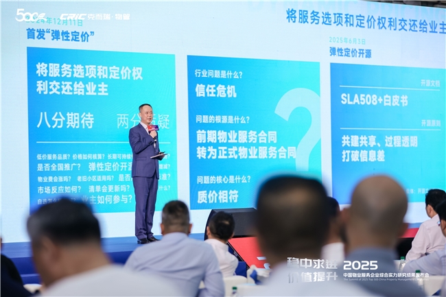 “今年6月3日,我们将弹性定价的508项服务标准开源,与150余位业委会、物企、行业协会、第三方机构、行业专家通过平台评论、电话与线上访谈、线下讨论等方式,展开了至少40次深度专业对话,收到专业评论200余项,大家的反馈意见主要聚焦标准、方案、定价、趋势四个方面。”6月13日举行的“2025中国物业服务企业综合实力研究成果发布会”上,万科物业副总经理邹明对以上反馈意见进行了逐一回应,并表示万科物业此举希望通过开放共享的方式,让物业公司都能与业主共同讨论标准,形成行业通用语言,共建服务新标准。