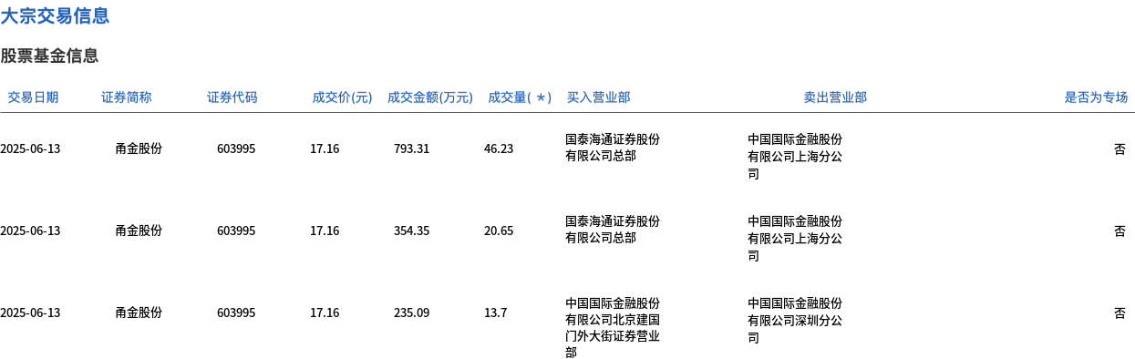 6月13日,甬金股份大宗交易成交80.58万股,成交额1382.75万元,占当日总成交额的3.08%,成交价17.16元,较市场收盘价17.16元持平。