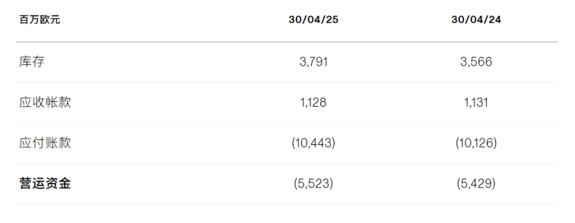 2025财年第一季度,Zara、Zara Home等门店数持续缩减,在王牌板块销售减缓下,Inditex的库存随之增加,同比增长6%至37.91亿欧元。期内,集团毛利润、息税前利润微增,毛利率与2024 年第一季度相比下降了4个基点。